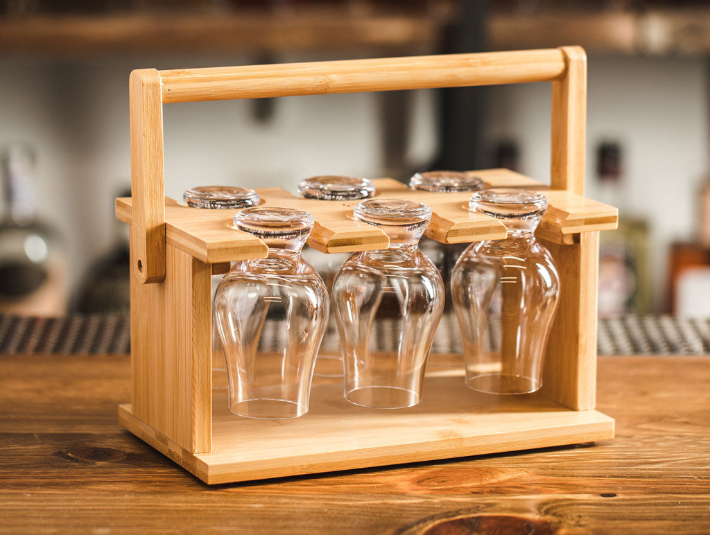 CairnCaddy Glassware Carrier (Natural Bamboo)