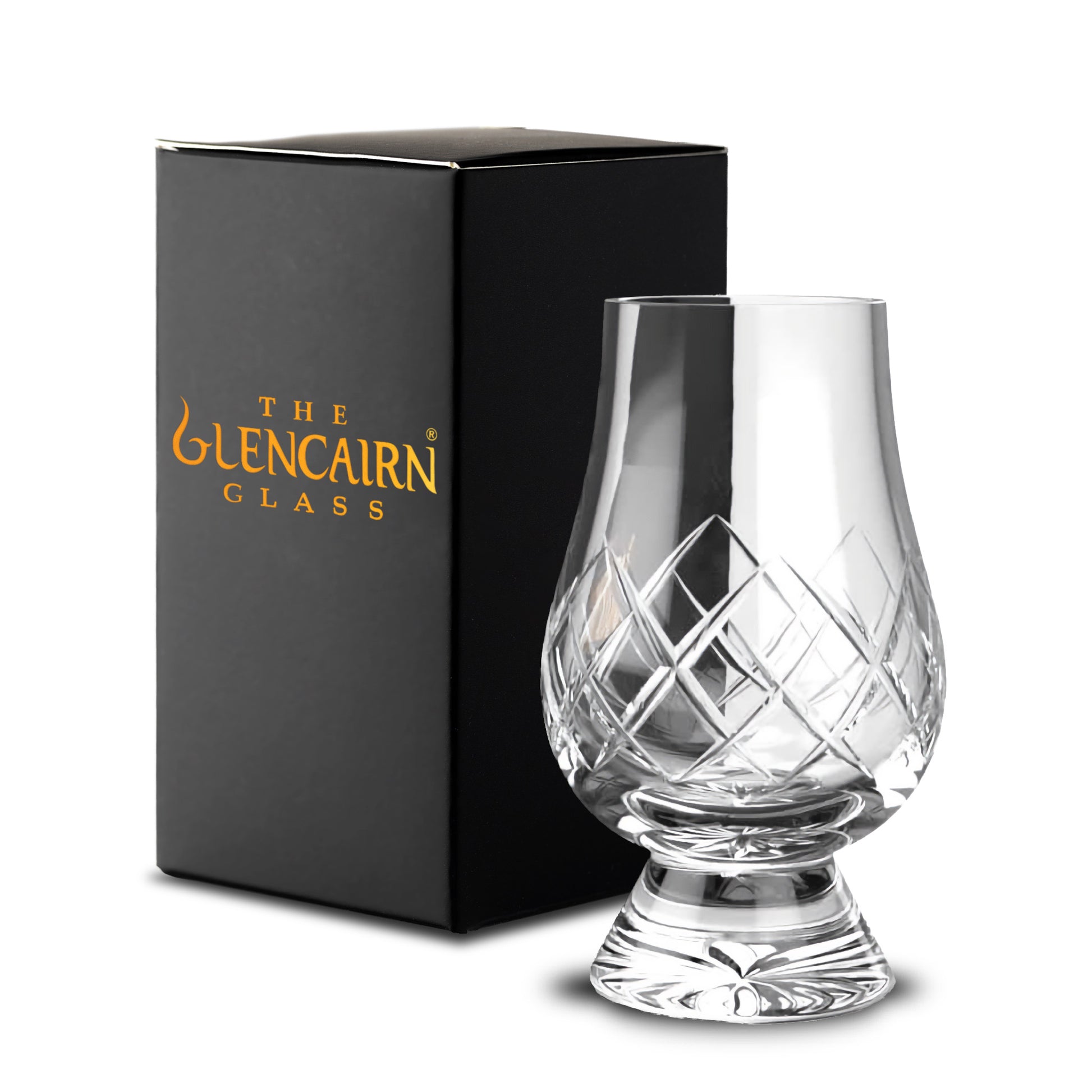 The mouth blown and Hand-cut Glencairn Glass is the ultimate interpretation of the classic Glencairn Glass. The wide crystal bowl allows for the fullest appreciation of the whisky’s color and the tapering mouth of the glass captures and focuses the aroma on the nose. Each Hand-cut Glencairn glass is supplied in a premium matte black carton or you can upgrade to a gift set for gifting to a loved one – or to yourself!