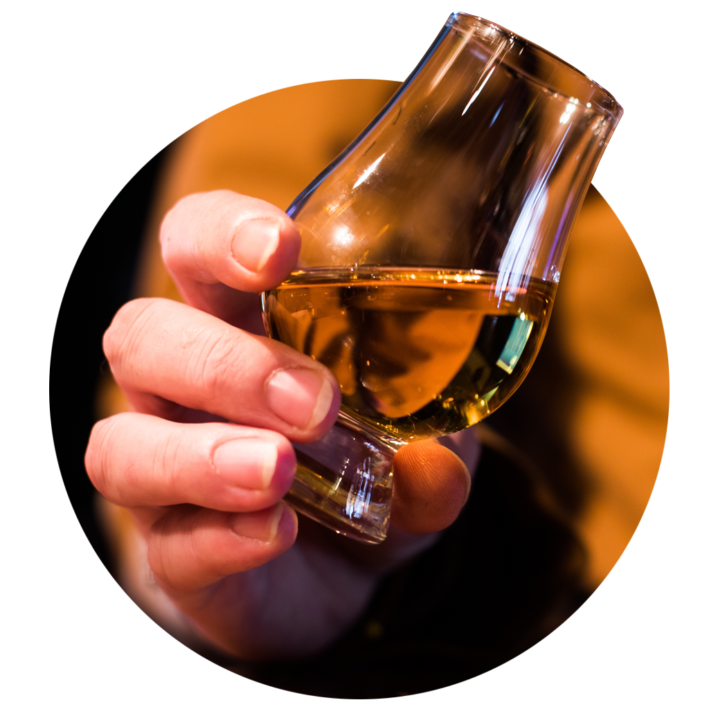- NOSE - The tapering mouth captures and focuses the aroma on the nose, enhancing the experience of detecting subtle notes of vanilla, smoke, fruit, or spice.